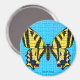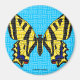 Desenho digital de uma borboleta Rabo-de-Andorinha Amarela, mostrando suas asas pretas e amarelas contra um fundo azul.