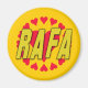 Rafa! Um círculo de corações em vermelho brilhante, com a palavra RAFA em amarelo-tênis. Mostre um pouco de amor ao Rafa! Viva Rafa!