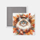 O ímã apresenta um adorável gato de rag boneca vestindo um cachecol e um chapéu, cercado por folhas do outono e decor. Um delicioso retrato de cor d'água felina de outono de um gatinho de cabelos longos de olhos azuis. Excelente para amantes de gatos, mães de gatos e pais de gatos!