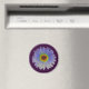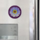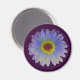 Esse bonito ímã apresenta uma fotografia de uma flor de marigold que foi manipulada para criar uma bela flor com uma mistura de cores do arco-íris. A flor está sobre um fundo roxo escuro dramático.