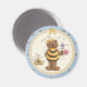 Um adorável ursinho de pelúcia vestido como uma abelha de bombordo com uma coroa e um buquê de flores.