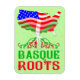 Mapa dos EUA com bandeiras do País Basco e norte-americanos se misturaram com o texto Basco Roots em vermelho e verde.