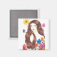 Imã Rapariga da Flor - Magneta Quadrada de 2 Polegadas