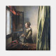 Johannes Vermeer (outubro de 1632 - dezembro de 1675), no original holandês Jan Vermeer van Delft, era um pintor holandês do período barroco que se especializava em cenas internas da vida da classe média. Durante sua vida, ele foi um pintor de gênero provincial moderadamente bem-sucedido, reconhecido em Delft e na Haia. Mesmo assim, produziu relativamente poucas pinturas e, evidentemente, não era rico, deixando sua esposa e filhos em dívida com sua morte. Vermeer trabalhava devagar e com cuidado com excelentes, e frequentemente usava pigmentos muito caros. Ele é particularmente conhecido por seu tratamento e uso intensos de luz em seu trabalho. "Quase todas as suas pinturas", escreveu Hans Koningsberger, "são aparentemente colocadas em duas salas pequenas na sua casa em Delft; mostram os mesmos móveis e decorações em vários arranjos e retratam frequentemente as mesmas pessoas, na sua maioria mulheres." Sua modesta celebridade deu lugar à obscuridade após sua morte. Mal foi mencionado no importante livro de fontes de Arnold Houbraken na pintura holandesa do século 17 (Grande Teatro de Pintores e Artistas Neerlandeses) e foi, assim, omitido de pesquisas subsequentes de arte holandesa por quase dois séculos. No século 19, Vermeer foi redescoberto por Gustav Friedrich Waagen e Théophile Thoré-Bürger, que publicaram um ensaio que lhe atribuía 66 fotos, embora hoje apenas 34 sejam universalmente atribuídas a ele. Desde então, a reputação de Vermeer cresceu, e agora é reconhecido como um dos maiores pintores da Era do Ouro holandesa. Citação: Wikipedia