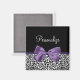 Qualquer garota adoraria que seu nome fosse personalizado neste ímã de impressão leopardo branco e preto giro com uma fita roxa bonito amarrada em um arco bonito. Este design de impressão de animais de moda vai trazer a moda em você. Imagem impressa plana, não fita real.