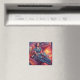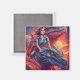 Este ímã tem uma imagem artística de uma garota montando um dragão nele.