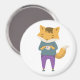 Raposa de cartoon em jeans a tomar uma xícara de chá