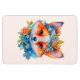 Magneta flexível com ilustração de um retrato adorável de raposa com uma coroa e coleira florais azul e laranja.