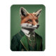 A IA gerou uma bela raposa vermelha em um terno verde para a Rua. Dia de Patrick