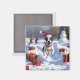 Imã Rat Terrier correndo em neve com chapéu de Natal