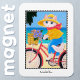 Este ímã bonitinho apresenta uma ilustração de estilo caprichoso de um gato branco andando de bicicleta pelo mar, com um pequeno rato na cesta. O texto abaixo da imagem pode ser personalizado, para que possa adicionar o seu próprio nome ou título. Ímanes personalizados fazem presentes de excelente para aniversários, feriados de Natal e muito mais!
