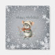 Um rato de cinza bonitinho vestido para o inverno num boné de estocagem e cachecol segura bagas e te deseja "Feliz Feriados". Está rodeado por um design de floco de neve branco. A saudação pode ser facilmente alterada para qualquer coisa que você preferir.