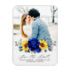 O elegante e moderno país rústico sanava a data em que o ímã apresenta girassol amarelo vivo, pénia azul-real, hálito de bebê, estrutura floral de girófilos/coroa com folhas de eucalipto. Por favor, encontre mais designs e variações na minha loja de "blisswedingpaperie". E fique à vontade para me contactar para mais personalizações ou itens correspondentes.