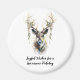 Adicione um toque de elegância às suas decorações de férias com o nosso incrível ímã de renas. Esta ilustração refinada apresenta uma rena majestosa adornada com galhadas em terras delicadas, condecoração e pequenos ornamentos, todos lindamente rendidos em uma paleta colorida de ouro, prata e verde profundo inspirada no luxo. O texto editável permite personalizar seu ímã com a frase "Desejos alegres por um feriado luxuoso." Perfeito para mostrar na geladeira ou dar como um presente pensativo, este ímã captura a essência da estação de uma forma chique e sofisticada.