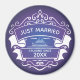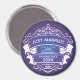 Imã divertida para sua casa ou navegando em suas férias de cruzeiro na lua de mel de destino. Fundo de gradiente roxo e azul acentuado com um emblema de na moda. O design de recem casados inclui um navio de cruzeiro e o ano do seu casamento. Perfeito para um marcador de porta de cabine do stateroom para ajudá-lo a encontrar seu status de cabine.