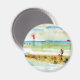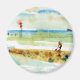 Trabalho de arte exterior. Gouache e tinta em papel texturizado. Um esboço de uma cena de praia de Mundesley, Norfolk, feito em outubro de 2010 no local. Um menino brincando com a areia, grande navio de contentores passando.