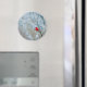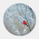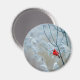 Um ímã com fotografia cênica com um cardeal vermelho brilhante. Contrastado com um pano de fundo de inverno externo com neve suavemente caindo.
