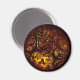 Design fractal vermelho e laranja que se parece com o sol a girar.