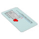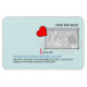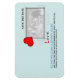 O elegante e moderno amor de coração vermelho salvará a data em que flexi foto magnet apresenta um coração vermelho inclinado com a palavra "amor" escrita abaixo do espaço fotográfico, tudo contra um fundo azul pálido. Disponível em várias cores. © Manhã 6
