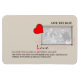 O elegante e moderno amor de coração vermelho salvará a data em que flexi foto magnet apresenta um coração vermelho inclinado com a palavra "amor" escrita abaixo do espaço fotográfico, tudo contra um fundo castanho pálido. Disponível em várias cores. © Manhã 6