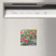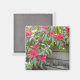 Um íman bonito para um amante natureza/flor. O Red Rhodo está crescendo contra uma parede de tijolos.