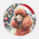 Magneta de Natal de Poodle Padrão Vermelho Cóctil, Vermelho, com tons vintage e uma árvore de Natal em segundo plano. O presente perfeito para amantes de poodle que possuem um poodle padrão vermelho.
