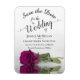 Estes magnatas são uma forma excelente de deixar seus amigos e família saberem salvar a data do seu próximo casamento. Eles apresentam um design elegante com caligrafia de script e uma foto de um solteiro magenta, roxo ou rosa colorido de morango refletindo em uma piscina com ondas e ondulações.