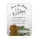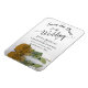 Estes magnatas são uma forma excelente de deixar seus amigos e família saberem salvar a data do seu próximo casamento. Eles apresentam um design elegante com caligrafia por script e uma foto de um rosa amarelo-mostarda ou dourado de cor amarela refletindo em uma piscina com ondas e ondulações.
