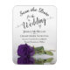 Estes magnatas são uma forma excelente de deixar seus amigos e família saberem salvar a data do seu próximo casamento. Eles apresentam um design elegante com caligrafia de script e uma foto de um rosa roxo solteiro refletindo em uma piscina com ondas e ondulações.