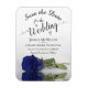 Estes magnatas são uma forma excelente de deixar seus amigos e família saberem salvar a data do seu próximo casamento. Eles apresentam um design elegante com caligrafia de script e uma foto de um rosa azul de marinho solteiro refletindo em uma piscina com ondas e ondulações.
