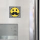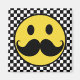 O bigode do bigode do guiador personalizado, com o rosto amarelo engraçado, é retrógrado em um fundo de prancha de xadrez.
