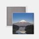 Majestoso Monte Fuji refletiu no lago Tanuki e foi enquadrado pelas margens do rio à noite.