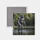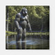 Sasquatch em pé ao lado do lago na floresta arte de ia.