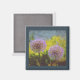 Eu adoro enormes florescências de alium em forma de globo. Estas únicas flores em forma de globo são na verdade compostas por centenas de pequenas flores. Esta imagem veio de uma foto original de um jardim botânico, com efeitos digitais aplicados, e é colocada sobre um fundo de cinza azul. Esta imagem faz um adorável imã de geladeira floral, assim como uma festa ou um favor de casamento.