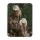 Numa floresta serena, dois lobos brancos ficam sobre um toco caído de árvores, seus pêlos encharcados pela chuva recente. Apesar disso, a presença deles chama a atenção, expulsando força e graça enquanto pesquisam seu domínio com olhos de alerta e posturas envenenadas.