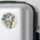Esta é uma bela imagem da Bênção Virgem Maria com Jesus e um carneiro num fundo floral vintage azul.