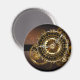 Relógios antigos e fantásticos com engrenagens de ouro e latão em um fundo marrom e enferrujado. Estilo Steampunk.