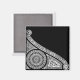 Homenagem a Leon Battista Alberti, geométrica estilizada, mármore preto e branco ornamental apresenta parte da fachada dos Papais noeis Maria Novella, Florence (1470)... A obra-prima arquitetônica italiana Renascentista, o voluto lateral de Alberti faz parte da fachada que liga as seções superior, nova e inferior. Aqui a arquitetura é considerada um cenário de elementos organizados em proporção de equilíbrio e harmonia, para ser vista como se fosse uma pintura.