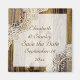 Lace branca rústica e elegante em ímã de casamento Save the Date em madeira, apresentando lace branca em madeira marrom que cobre dois cantos de um retângulo branco com borda de madeira marrom. Texto em marrom. Observe que a lace e a madeira são todas "impressas" e não materiais reais. Este design elegante, sofisticado e romântico com uma essência rústica shabby chic faz parte de um conjunto de casamento e é perfeito para um casamento country chic ou western na primavera, verão ou outono. Também funcionará perfeitamente para um casamento com tema de celeiro western.