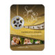 Luz, câmera, ação! Este convite de casamento elegante e único em forma de ímã apresenta três fotos dos noivos em uma bobina de filme de Hollywood. O esquema de cores glamoroso inclui tons metálicos de champanhe, dourado, bronze, estanho e prata. Dica: use a função "Personalizar" para diminuir/aumentar ou posicionar suas fotos.