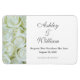 Esta Imã salve a data é mostrada em um layout formal clássico na cor Branco, com texto preto e Cinza e texto de script, destacando os nomes Bride e Groom e acentuando com um impressão de foto de flor de rosas branca. Personalize e clique no botão, vá para a direita para as caixas de texto e altere o texto apropriado para o seu.