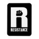 Este trabalho de arte apresenta a palavra resistência e um punho elevado.