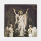 Jesus com braços estendidos enquanto se encontra em frente ao túmulo aberto. Os anjos cultos em ambos os lados. Carl Bloch