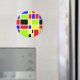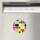 Um desenho abstrato geométrico colorido de borda duro, talvez um pouco reminiscente de Mondrian.