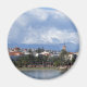 A cidade de Rethymnon em Creta, Grécia no inverno com neve nas montanhas ao fundo.