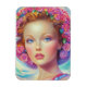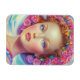 Um retrato de fantasia impressionante de uma mulher adornada com uma coroa vívida e tons pastéis brilhantes. Seus olhos azuis luminosos e sua expressão suave são complementados por uma delicada borboleta e uma aura do arco-íris girando. Esta ilustração assombrosa combina beleza, natureza e elegância surreal.