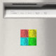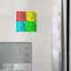 Retrato de Beethoven em quadrados vermelhos, amarelos, azuis e verdes. Imagem com efeito gravado aplicada ao design. Ímanes personalizados.