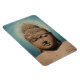 Retrato de uma estátua de Buda sobre um fundo azul "marmoreado".