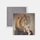 Esta design apresenta um retrato de um leão em um terno e gravata.