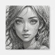 Menina de anime bonita com olhos grandes, desenho de retrato preto e branco.